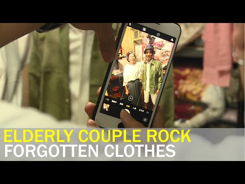 An elderly couple has gotten creative with clothing that their customers have left behind